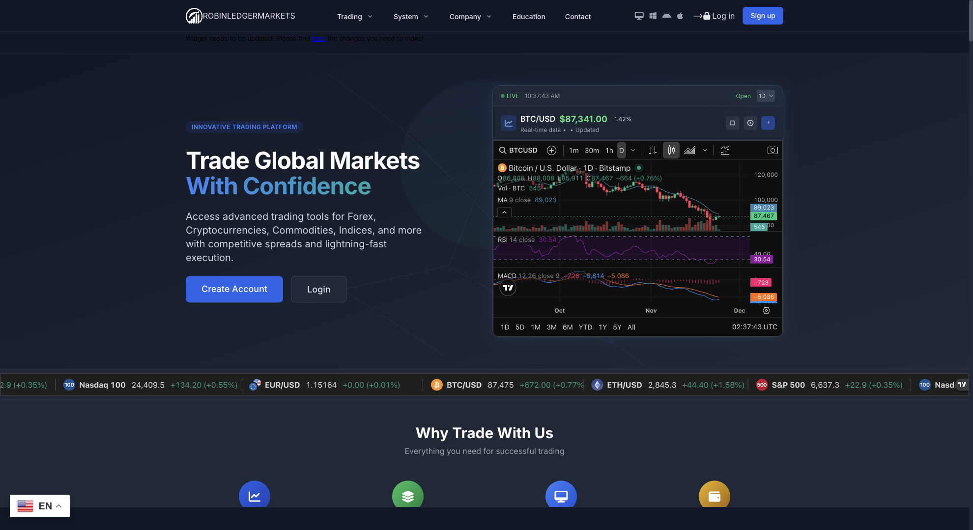 The website operated by ROBINLEDGERMARKETS is as follows: