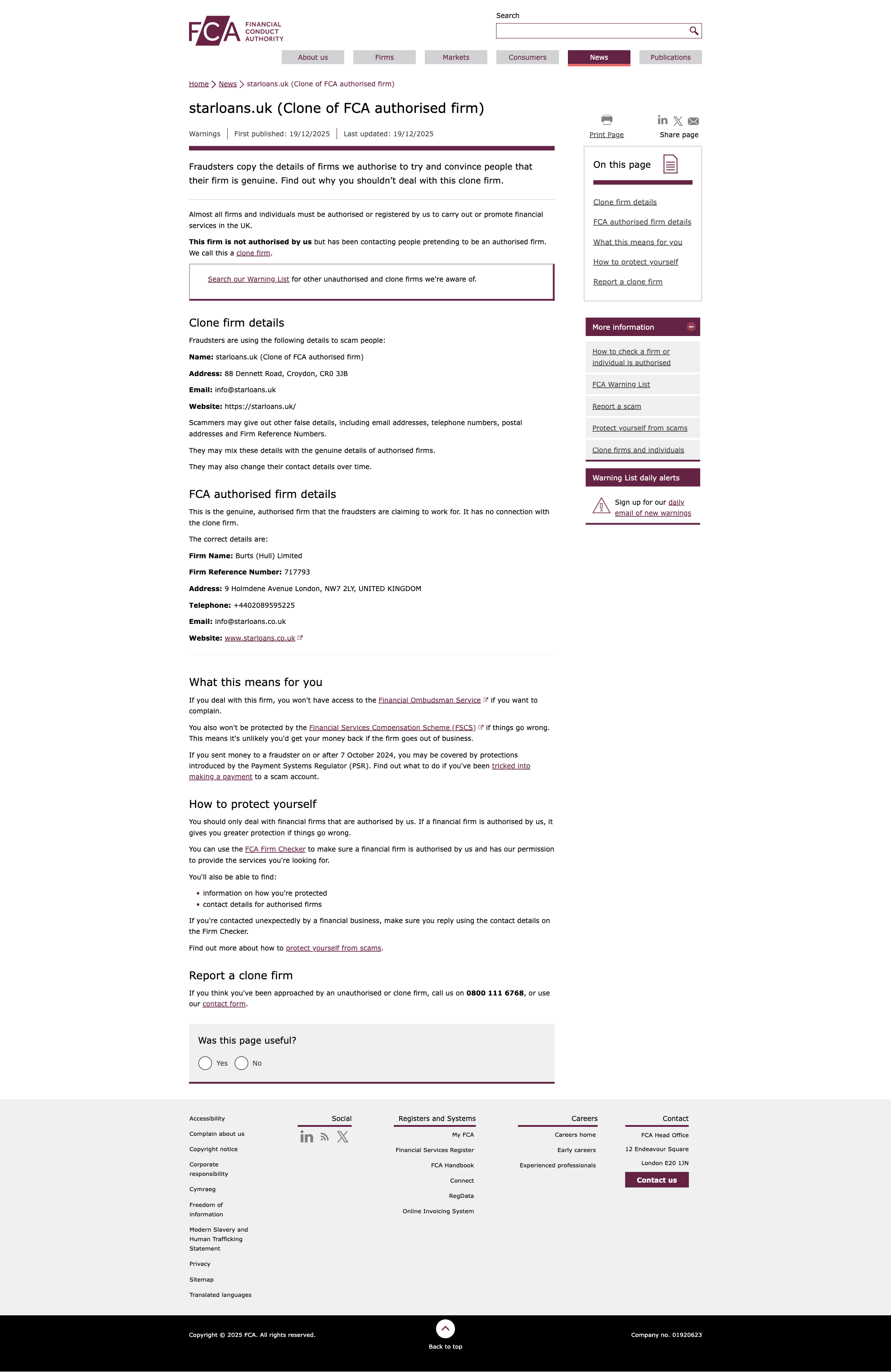 Clone traderFCA 2025-12-19 Avertissement de trading illégal Dernier : starloans.uk Affaires illégales exposées!