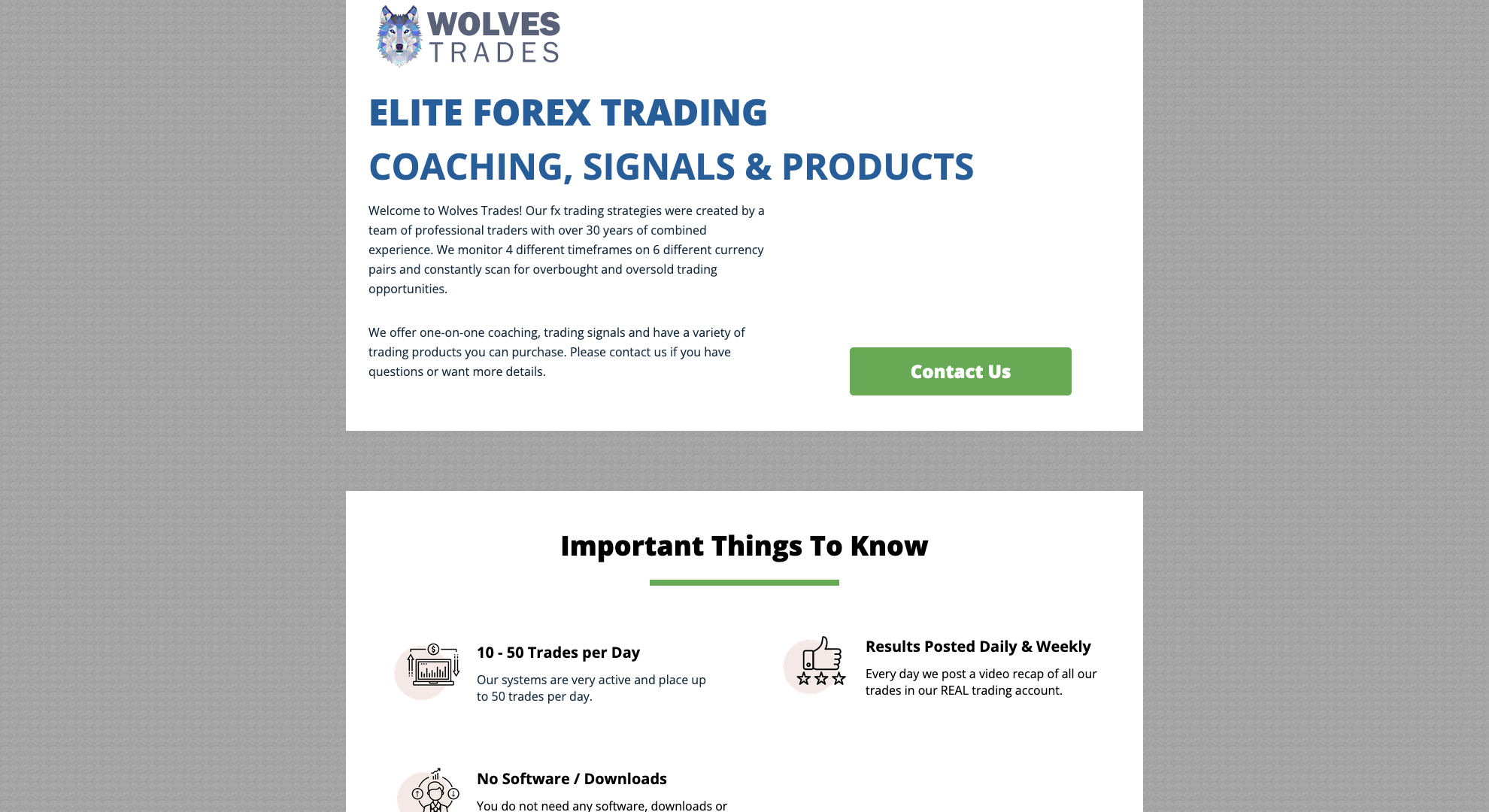 Situs web yang dioperasikan oleh Wolves Trades / wolvestrades.com / @wolvestradesfx adalah sebagai berikut:
