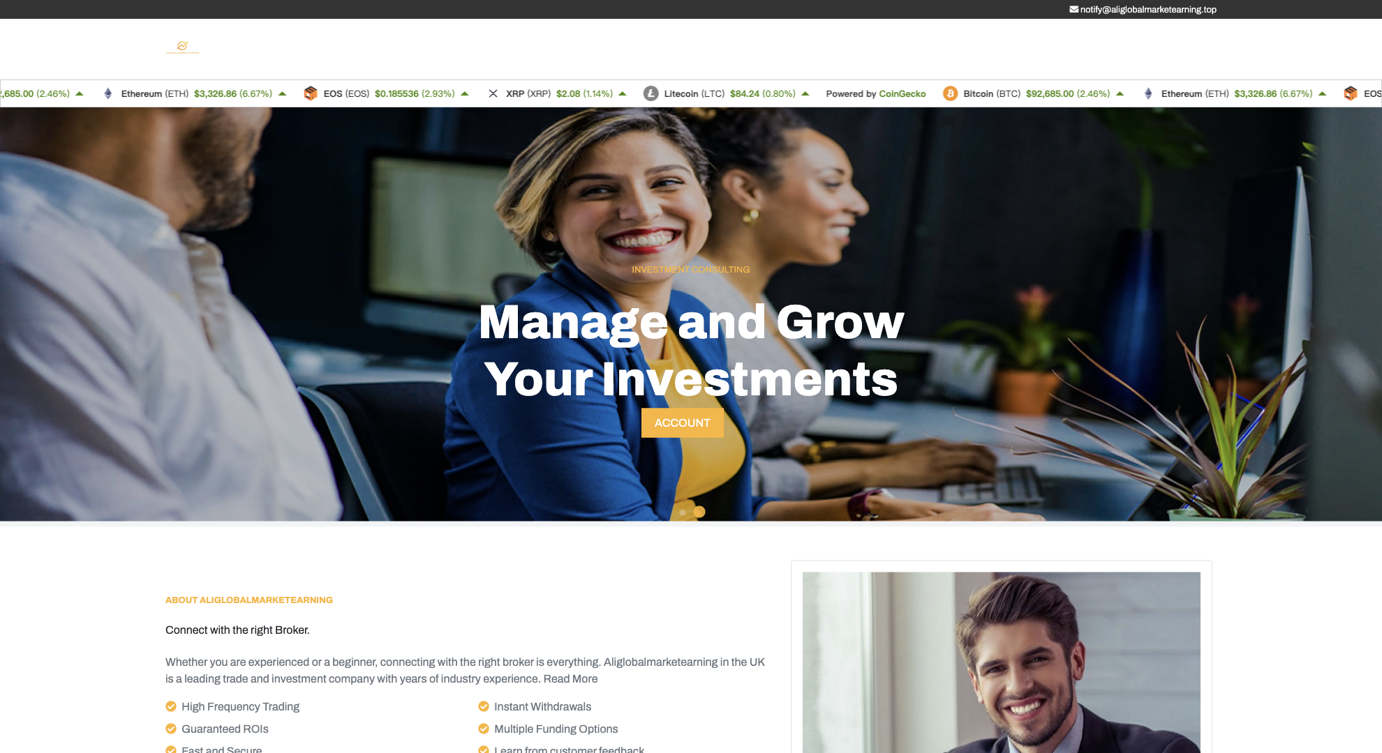 Aliglobalmarketearning所運營的網站如下圖所示: